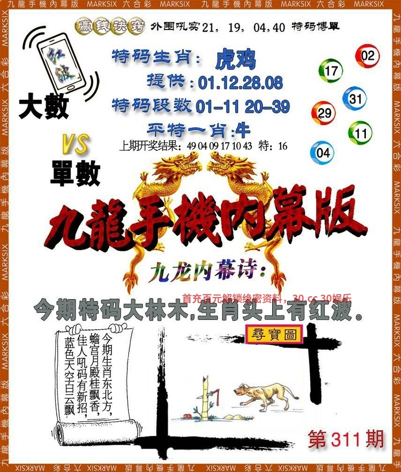 | 307期:杀两合【杀01+13合】开:狗20准 |
